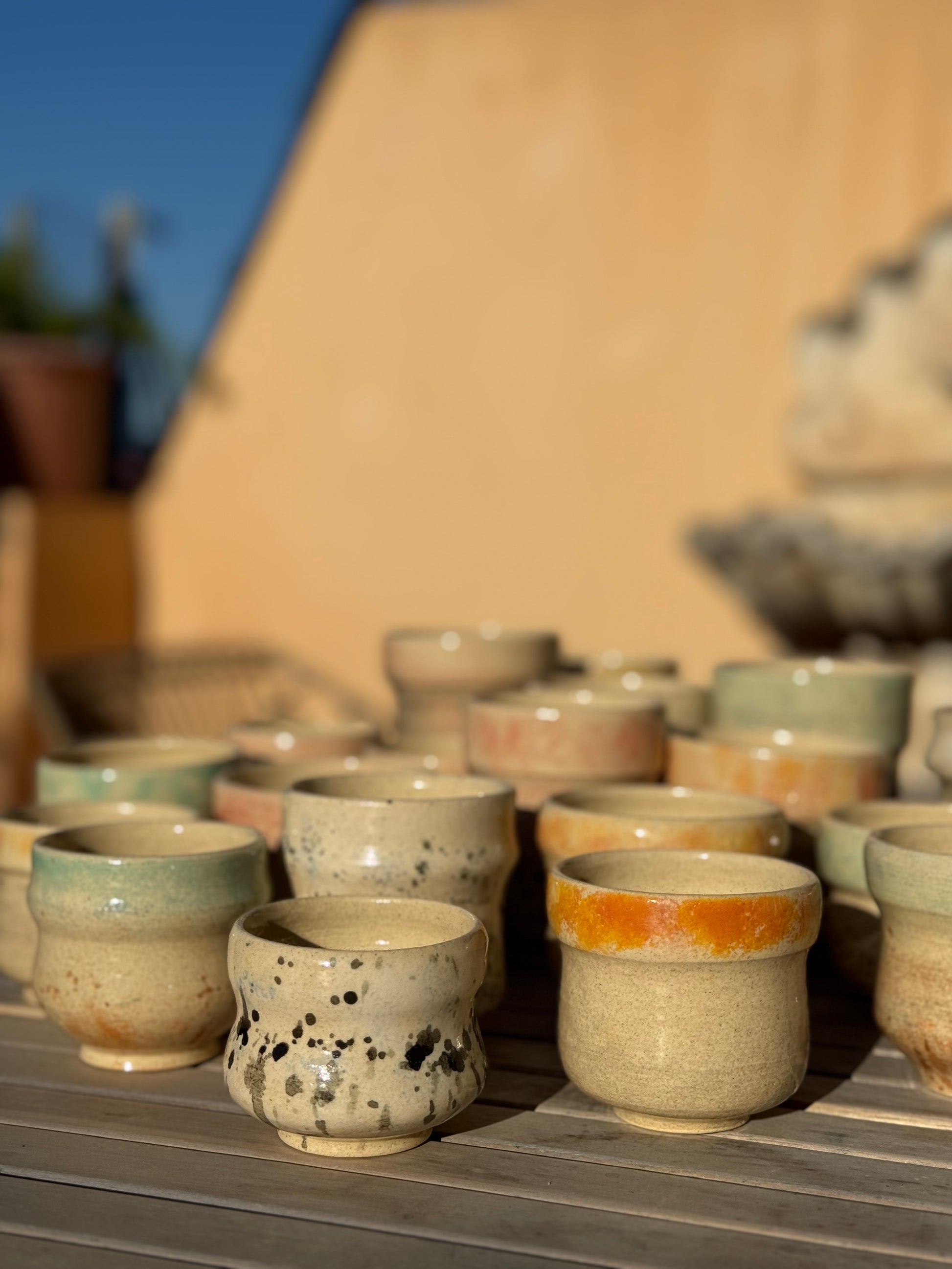Każda z 20-tu unikatowych czarek została wytoczona na kole garncarskim, ręcznie pomalowana metodą podszkliwną i wypalona na kamionkę w temperaturze powyżej 1250℃.