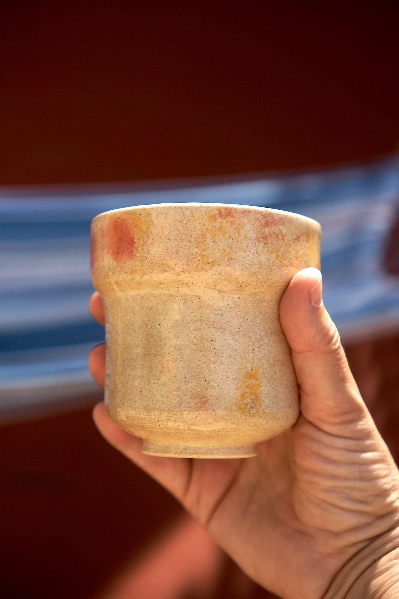 Każda z 20-tu unikatowych czarek została wytoczona na kole garncarskim, ręcznie pomalowana metodą podszkliwną i wypalona na kamionkę w temperaturze powyżej 1250℃.
